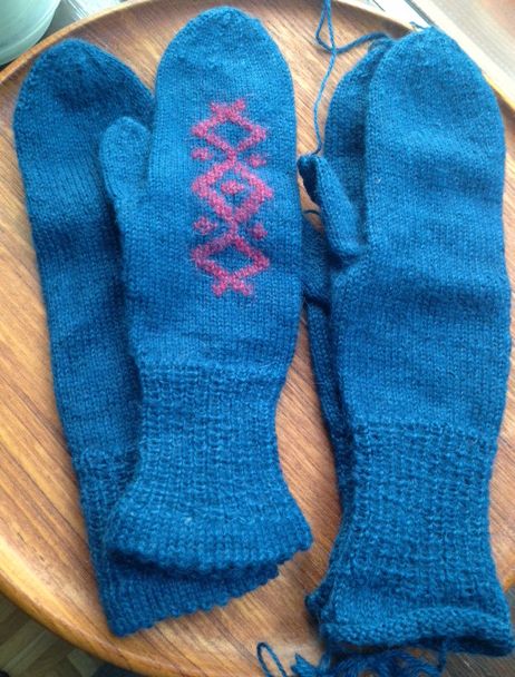"Muistelin, että opintojen kurssityönä neulomistani lapasista toisesta jäi puuttumaan koristelu. Mutta kun kaivelin pussia, niitä olikin kahdet samanlaiset. Minulla ei ole mitään muistikuvaa, miksi olen tehnyt lapasia toisetkin. Vähää vaille valmista olisi."