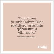 Jos tekeekin lempiasioiden lisäksi asioita, joita ei osaa, voi olla varma, että oppiminen kestää läpi elämän. Ja kun lopulta onnistuu, se palkitsee enemmän kuin uskotkaan.