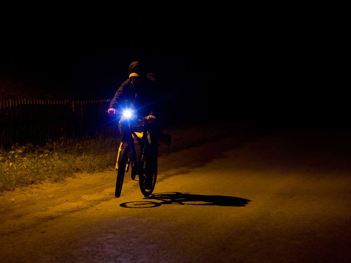 Havahdun: lamppu täytyy asettaa osoittamaan alaviistoon niin, että näen lampun valokeilan maassa. Pyörän valon ei tarvitse olla kaikista kirkkain, himmeämpikin riittää. Punainen valo kuuluu taakse, vilkuttaa ei tarvitse koskaan.