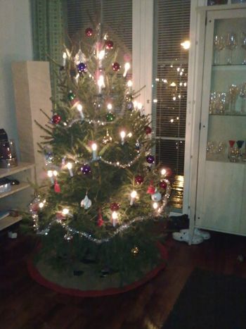 "Minun kaikkien kotieni joka jouluun on kuulunut oikea kuusi ja oikeat kynttilät. Kuvassa tämänvuotinen kuusi!"