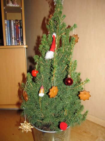 "Äiti ja isä toivat joulukukan asemasta meille minikuusen, joka koristeltiin pipari- ja omenakoristein."