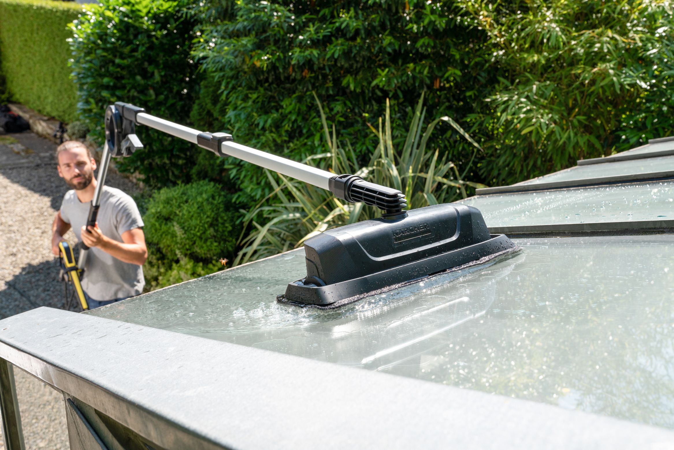 Pelkällä painepesurilla voi olla hankala yltää pesemään korkeita ikkunoita, rännejä tai katoksia ilman kiipeilyä. Helpotusta pesu-urakkaan voi tuoda Kärcher-jatkovarsi, jonka avulla voi ulottua jopa viiden metrin korkuisiin pintoihin.