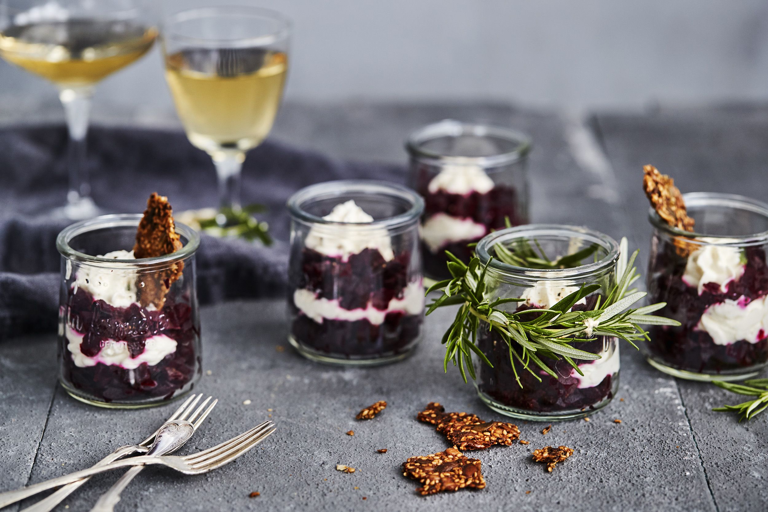 Punajuuri-vuohenjuustosalaattikupit ja siemennäkkäri - katso reseptiTässä kolme juhlapöydän suupalaa. Äänestä herkullisinta pikkujoulujen reseptiä!