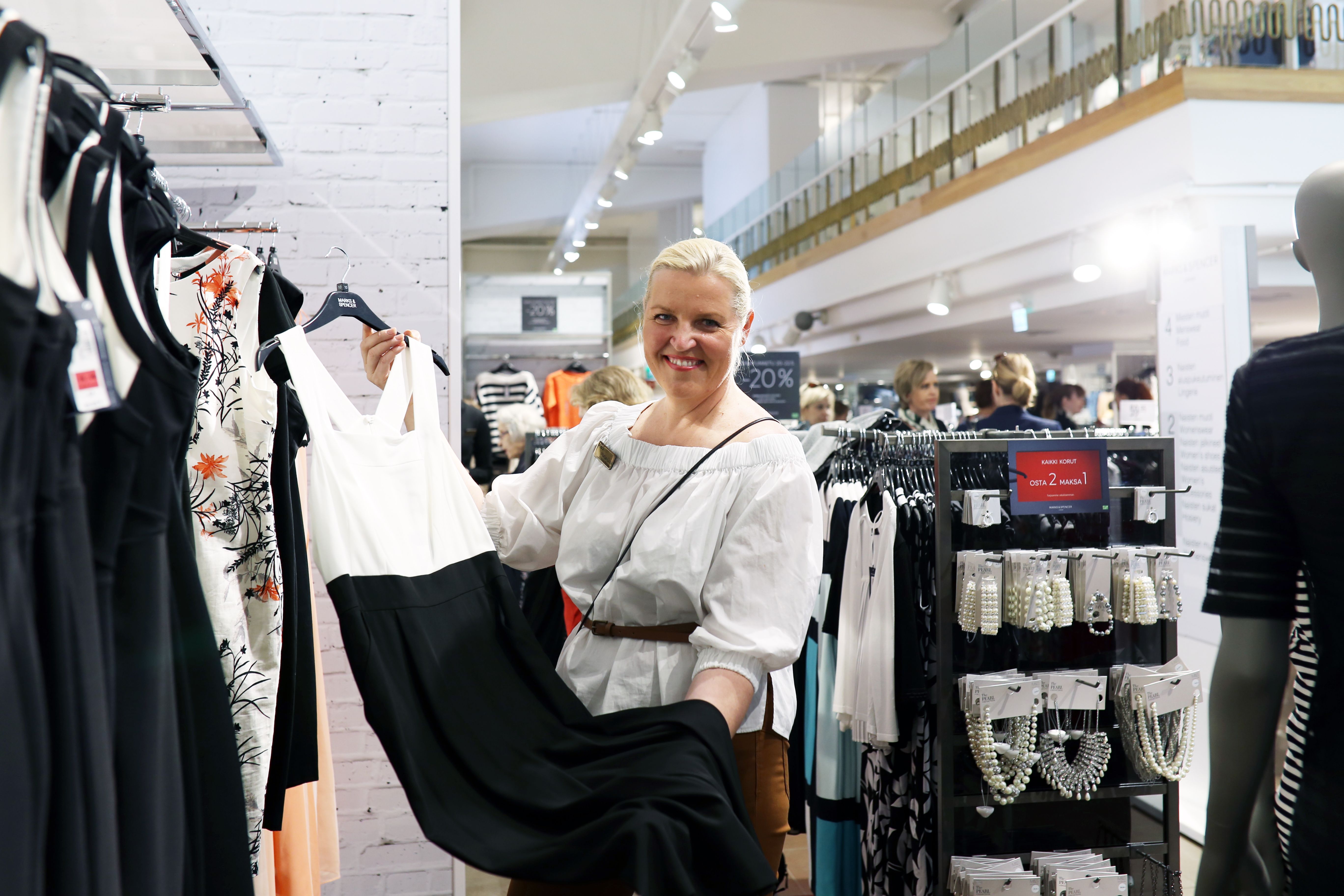 Myös myyjä Linda Pariña on asustamisen puolestapuhuja. "Balanssi on kaiken a ja o", hän totesi alakerran stailauspisteellä. "Asussa on hyvä olla yksi katseenvangitsija joko ylä- tai alaosassa: kaunis koru, värikäs yksityiskohta tai kiva asuste", Linda kertoi ja näytti, kuinka puuterinvärinen kauluspaita saa seurakseen näyttävän riipuksen, mustan nahkalaukun ja kesäkäyttöön sopivan valkoisen liivin. Helppoa ja ajattoman tyylikästä!