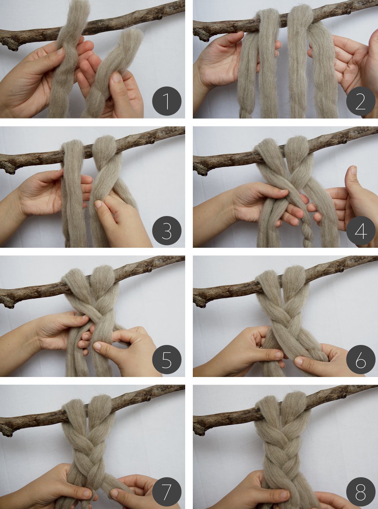 2. Aseta langat vierekkäin oksan puoliväliin.