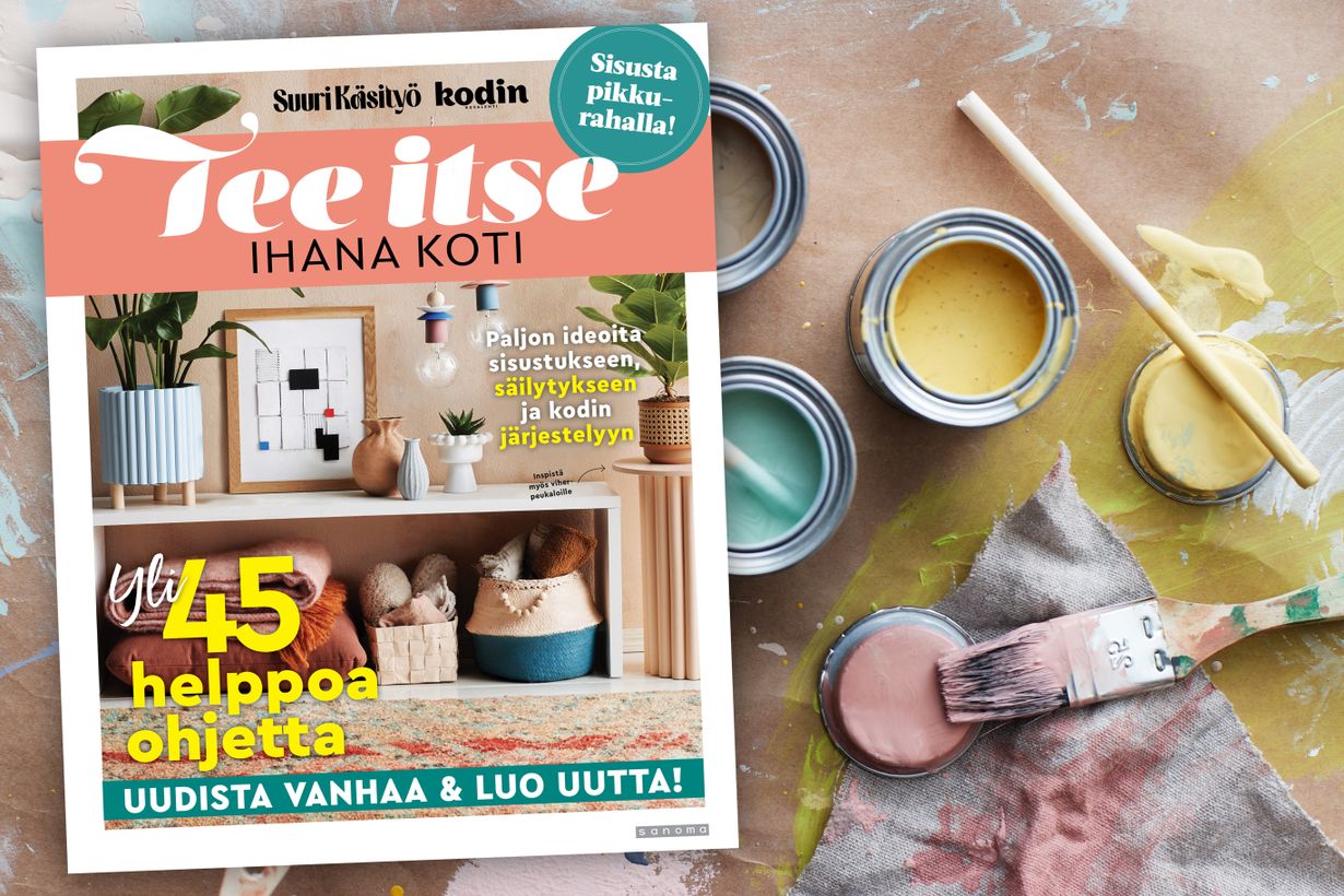 Kokosimme Suuren Käsityön ja Kodin Kuvalehden yhteiseen uutuuslehteen lähes 50 helppoa suosikkiohjetta, joiden avulla jokainen voi ryhtyä tee se itse -sisustajaksi. Mukana on uuden nikkarointia ja näpräämistä, vanhan freesaamista ja kotoa jo löytyvien materiaalien hyödyntämistä. Tekniikoita on laidasta laitaan, joten kannattaa kokeilla rohkeasti uusiakin!