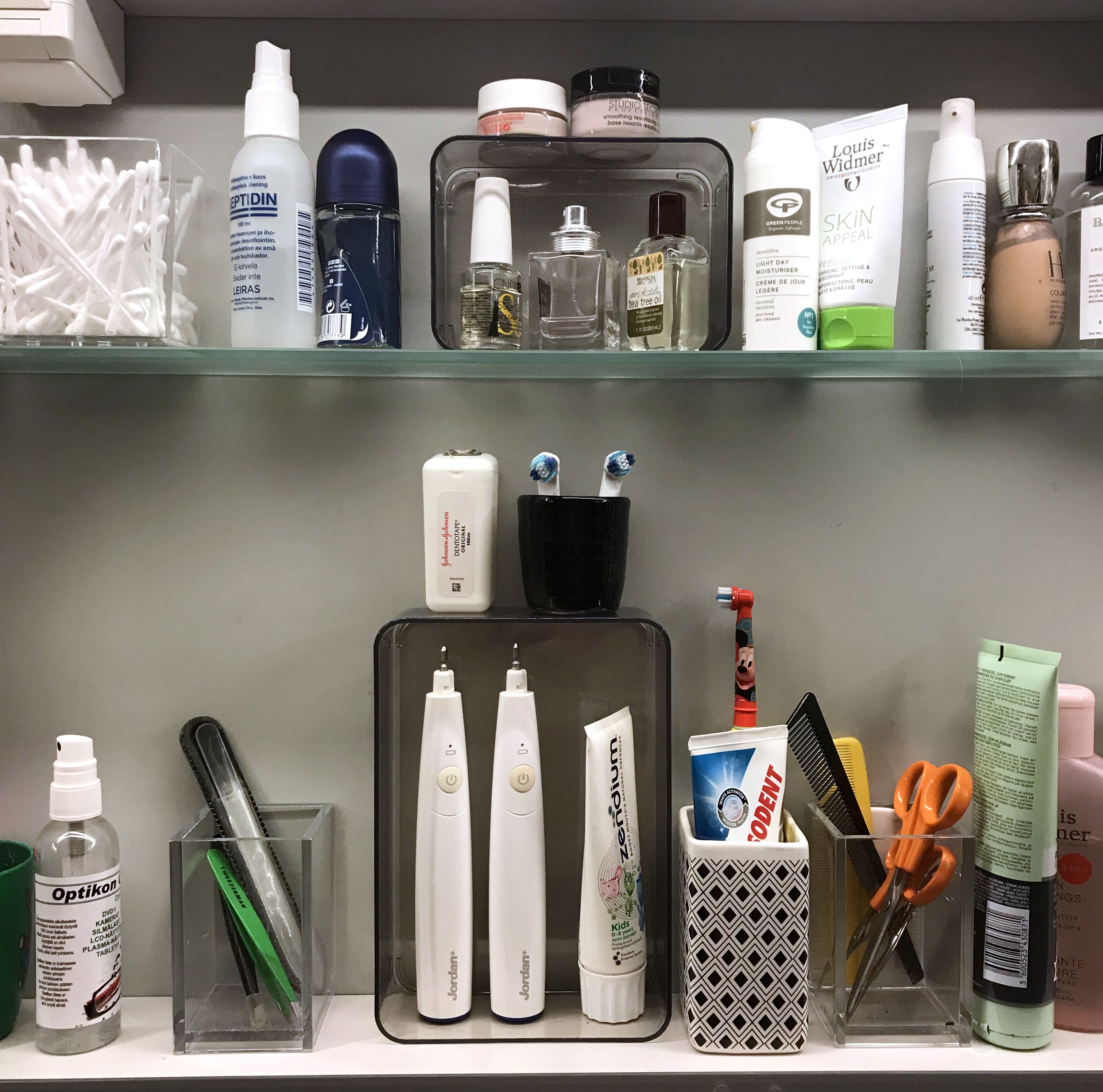 Kiepauta pikkulaatikot lappeelleen, ja saat niistä käteviä lisätasoja esimerkiksi kylpyhuoneen kaappiin, jossa ainakin meillä on hukkatilaa. Ostolaatikoiden lisäksi voit hyödyntää erilaisia pakkauksia. Esimerkiksi vanupuikkojen hieman kovempaa muovia olevat rasiat kannattaa säästää ja käyttää tähän tarkoitukseen!