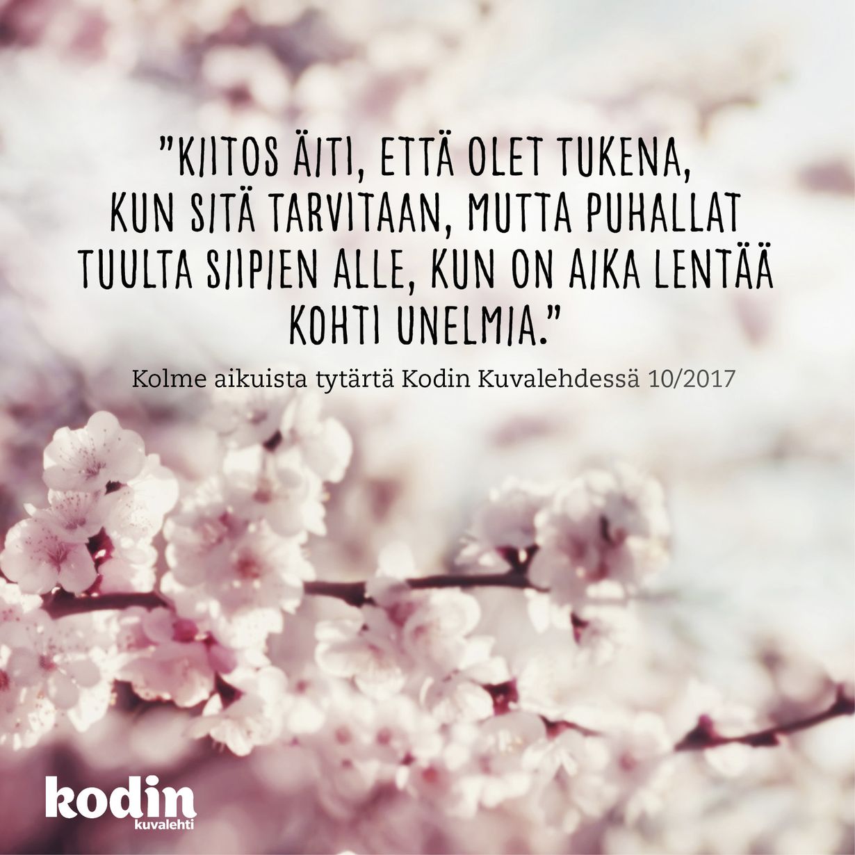 Onnea äidille! Kodin Kuvalehti kuva Istockphoto 14.5.2017 klo 8:01 Tilaa Kodin Kuvalehti oivallus äitienpäivä hyvä mieli äitienpäivä Tilaa Lue digilehtenä
