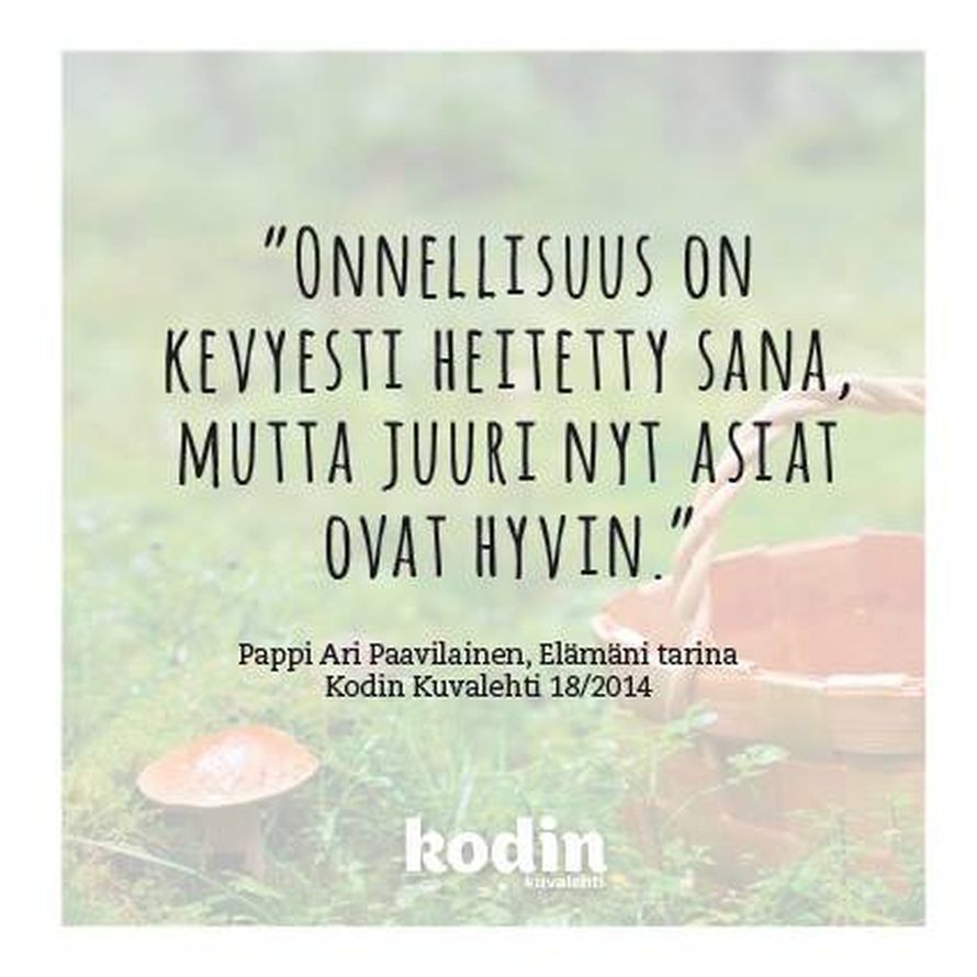 Onnellisuudesta 11.10.2014 klo 20:10 Mikä on sinun voimalauseesi? Kerro se meille muillekin kirjoittamalla kommenttikenttään. Tilaa Kodin Kuvalehti ajatus oivallus voimalause Tilaa Lue digilehtenä
