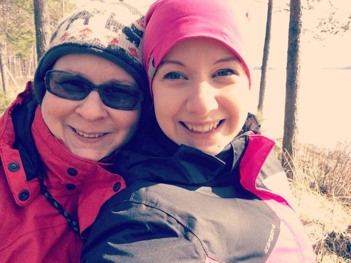 Kuvassa äiti ja minä pääsiäisenä 2017.
