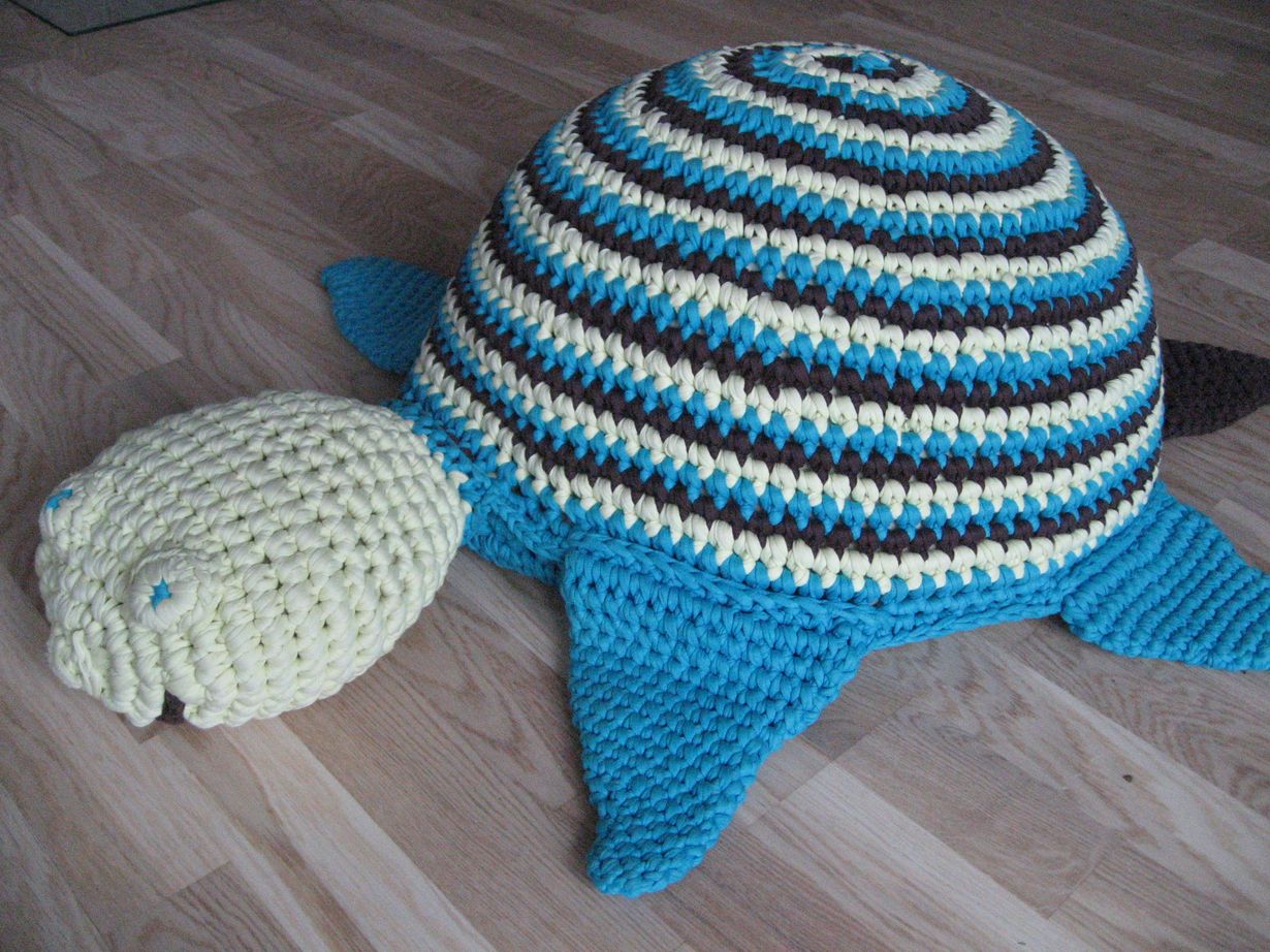 Suuri Käsityö - itse tehty pehmolelu Amigurumi kasvoi isoksi 27.2.2014 klo 17:29 Matonkuteista tehty, lattiatyynyksi leikkeihin virkattu. Kilpikonna
