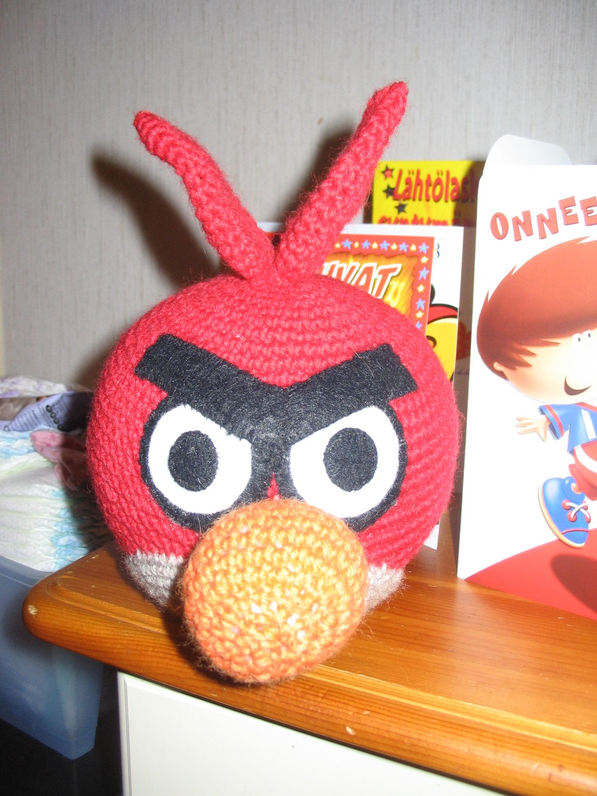 Suuri Käsityö - itse tehty lahja Angry Birds 15.12.2012 klo 20:50 Lanka seitsemän veljestä. Virkkaamalla tehty. Askarteluhuovasta silmät, kulmakarvat ja taakse pyrstö. Ompelemalla kiinnitin paikoilleen. Kutojamuori
