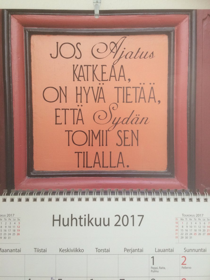 Sain työkaveriltani joululahjaksi kalenterin jossa on mietelause joka kuukaudelle. Ihana arjen piristys!