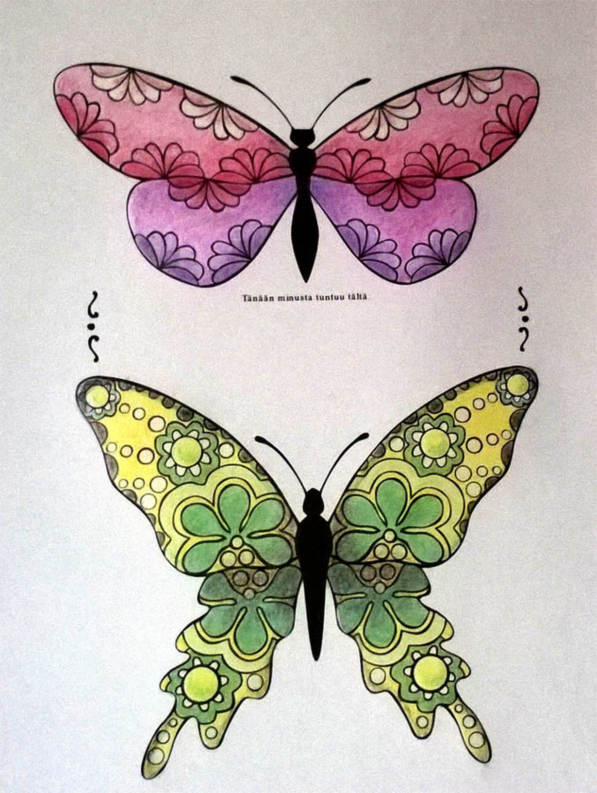 Mielenrauhaa aikuisten värityskirjasta - väritä perhoset ja voita!