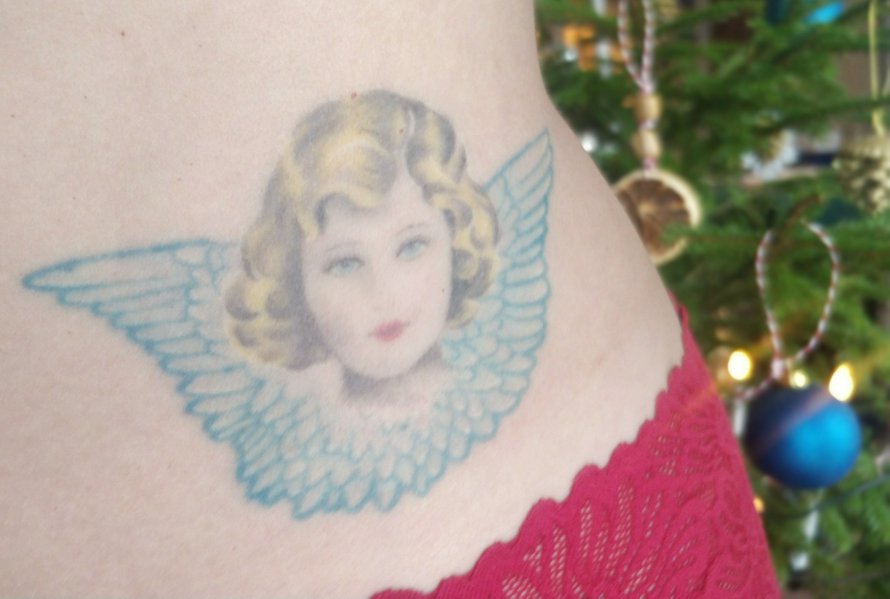 Mummu antoi siskolleni ja minulle aina enkelikiiltokuvia ja kirjoitti korttteihin "enkeli lentää liihottaa, sinulle onnea toivottaa". Kuva on muisto lapsuuden hyvistä hetkistä ja meidän mummusta.
