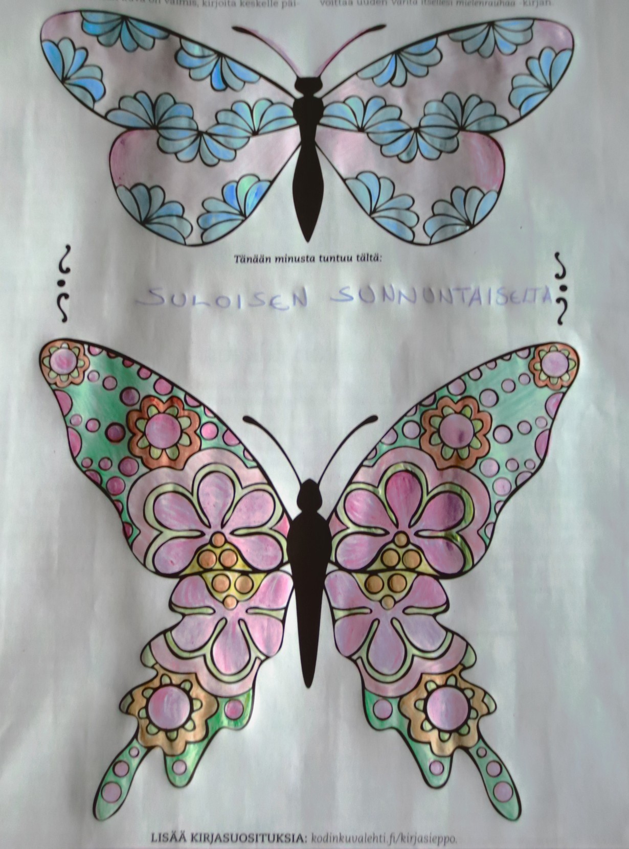Mielenrauhaa aikuisten värityskirjasta - väritä perhoset ja voita!