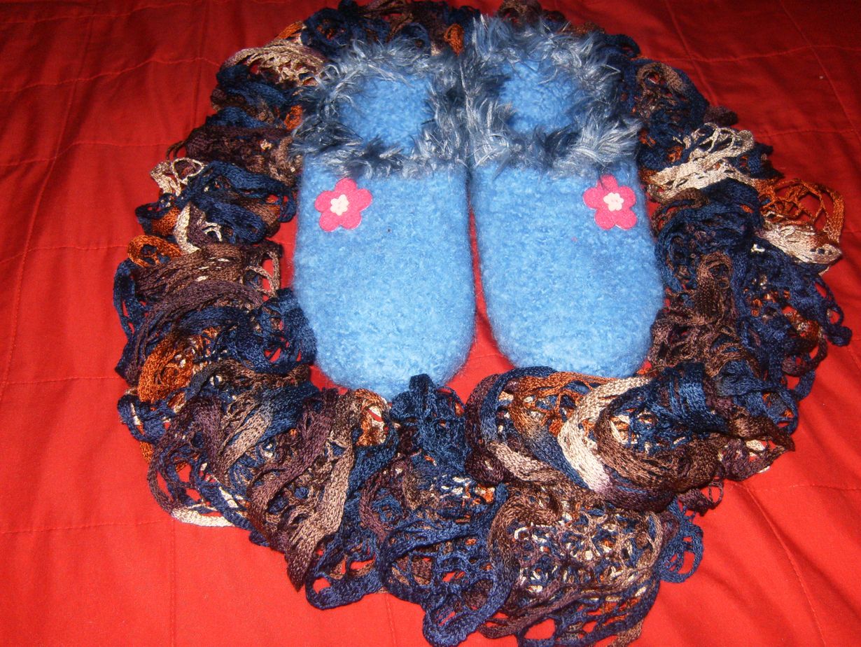 Suuri Käsityö - itse tehty lahja frilla-huivi ja huopatossut 22.12.2012 klo 20:24 tämän ihanan lahjan saa ystäväni.