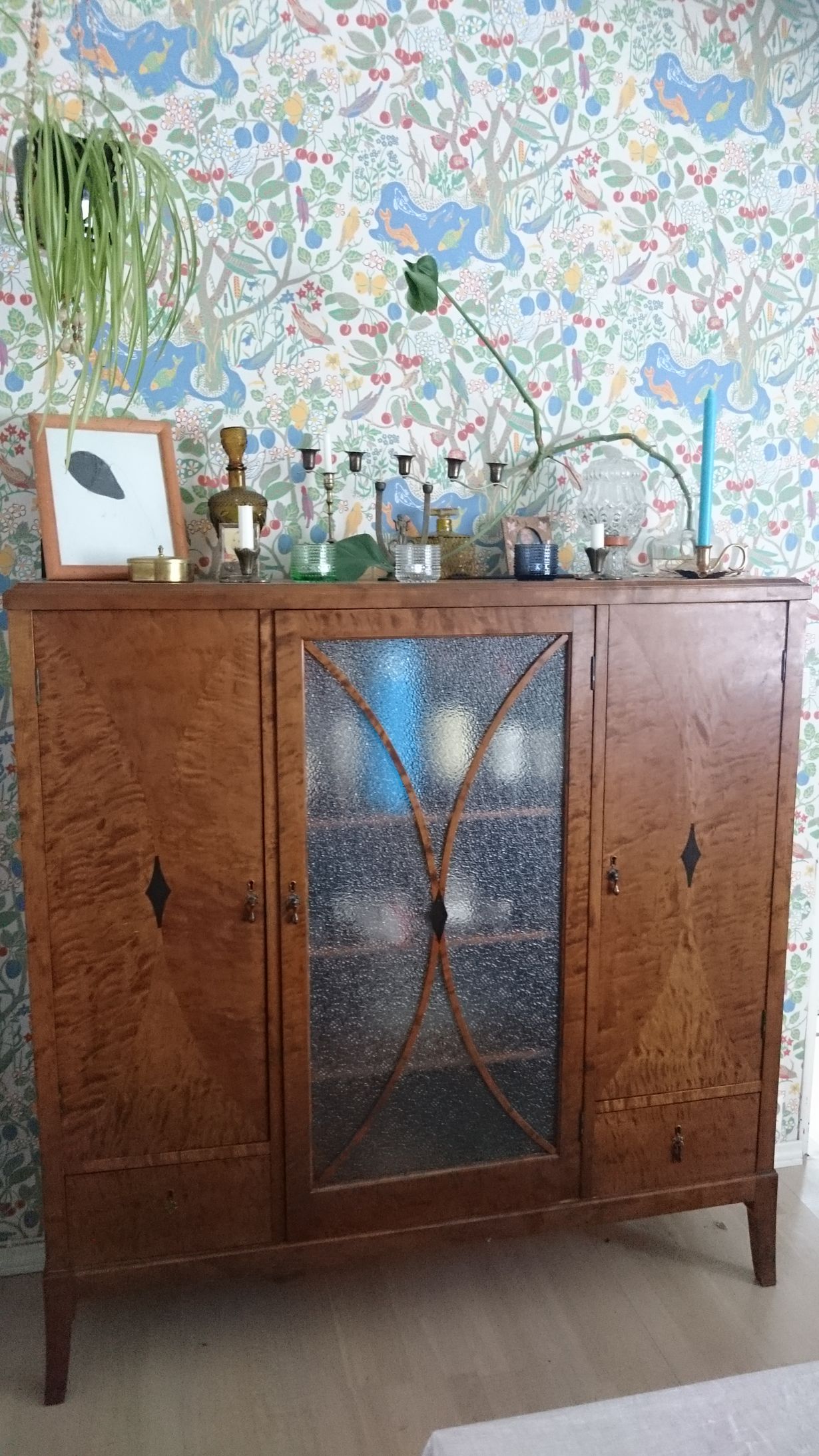 Tämä elegantti, vanha rouva lipasto, löysi perheeseemme pitkän, vuosia kestäneen etsinnän jälkeen. Yllättäen hän löytyi läheiseltä kirpputorilta, josta normaalisti on tarttunut mukaan pieniä käyttöesineitä tms. Nyt saamme nauttia vanhan rouvan seurasta ja kauneudesta päivittäin kun hän seuraa arkeamme ruokailuhuoneen paraatipaikalta.