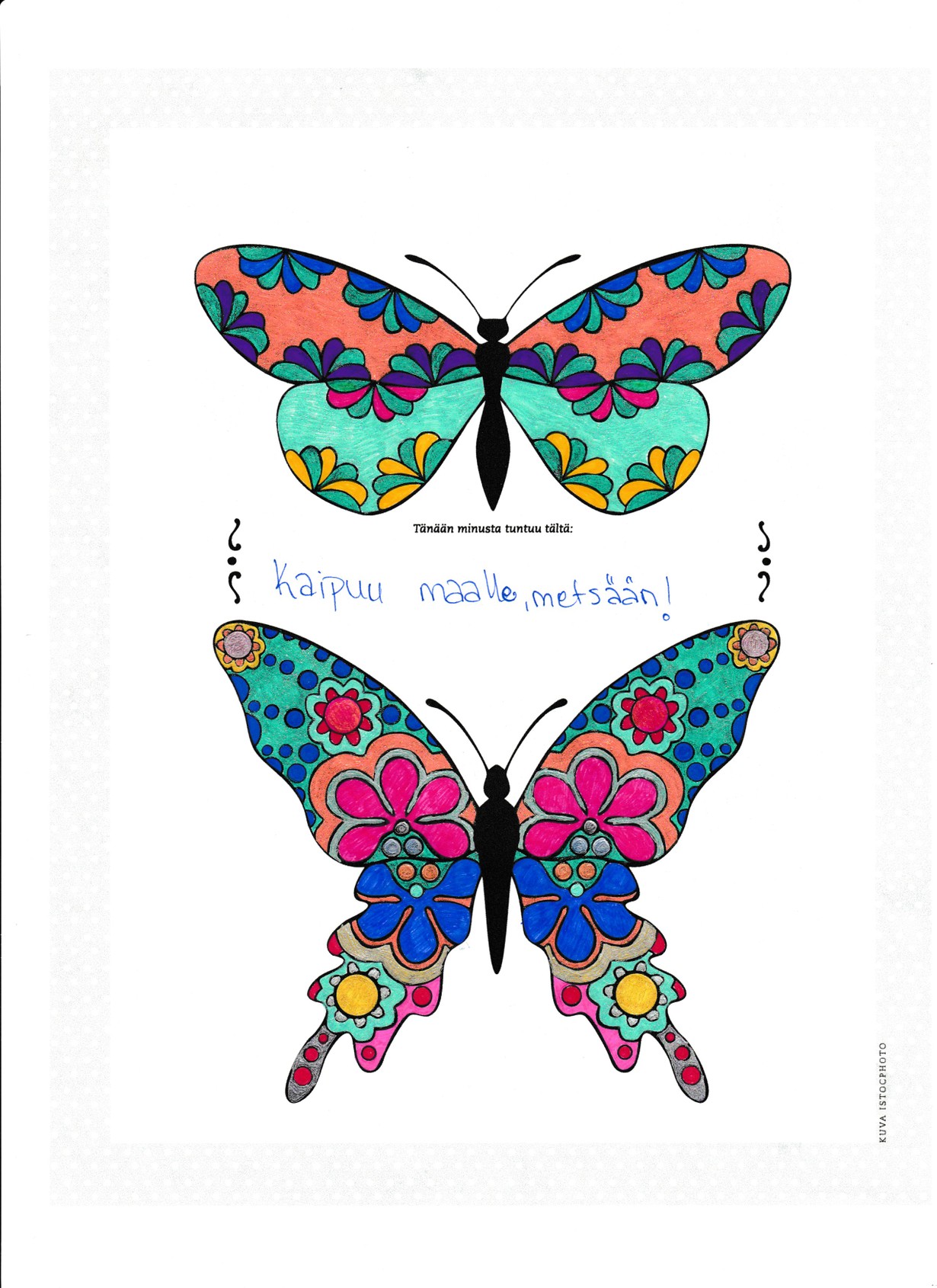 Mielenrauhaa aikuisten värityskirjasta - väritä perhoset ja voita!