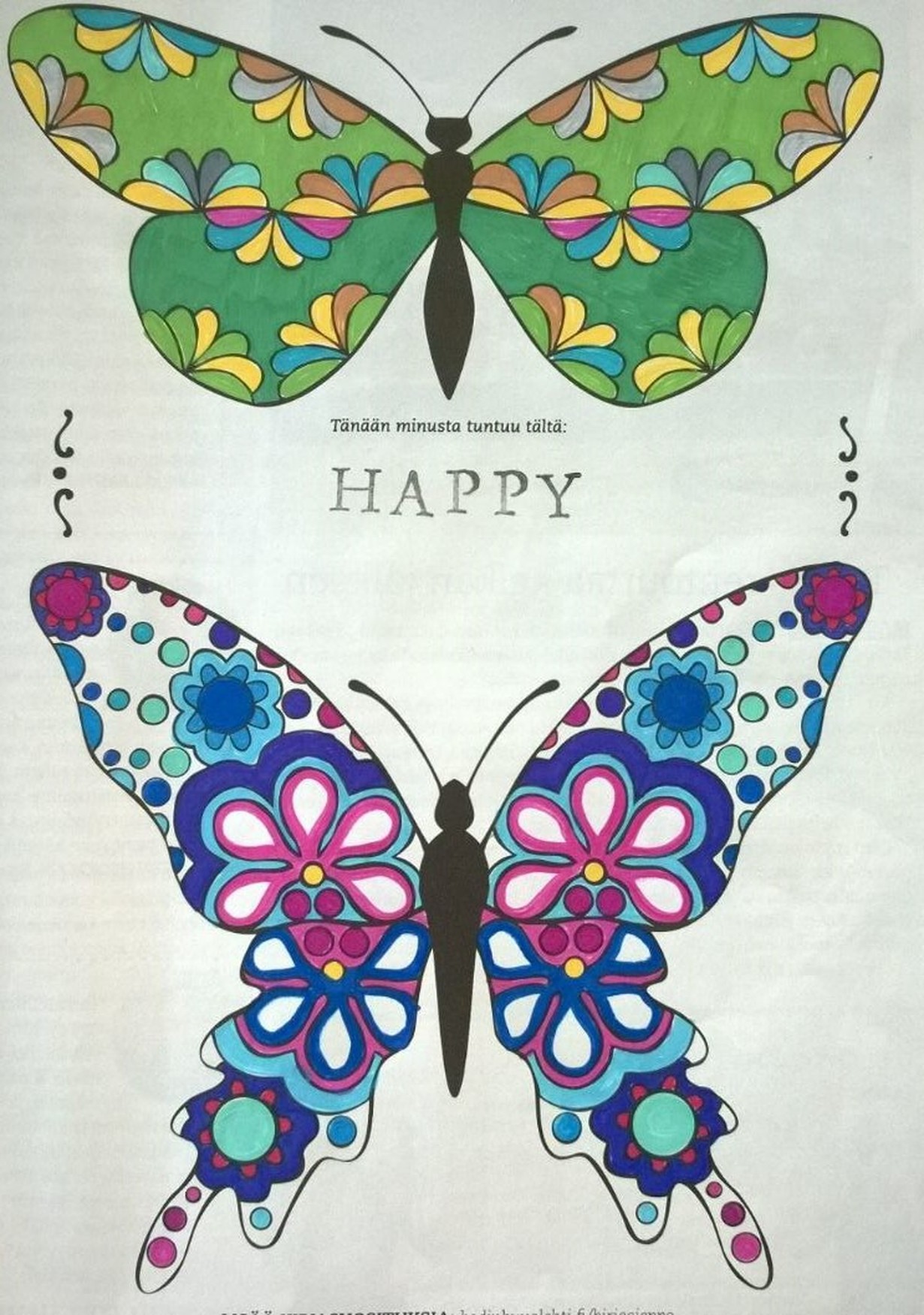 Mielenrauhaa aikuisten värityskirjasta - väritä perhoset ja voita!