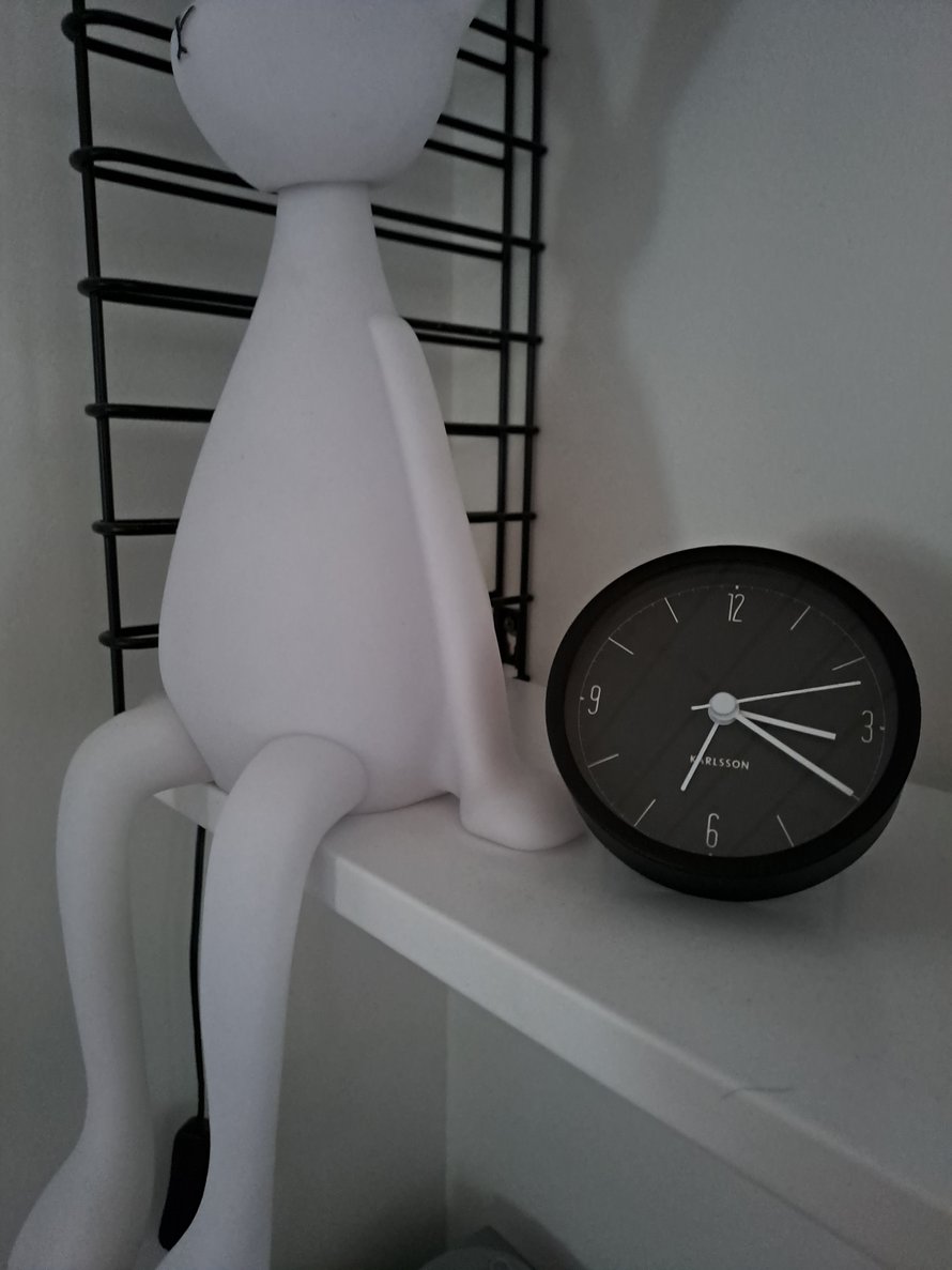 Myöhästyessäni kerran töistä, kännykkäni ei jostain syystä herättänyt minua. Sen aamun jälkeen kävin ostamassa herätyskellon ja löysin vielä sellaisen mikä sopi aivan täydellisesti makuuhuoneeni hyllylle!