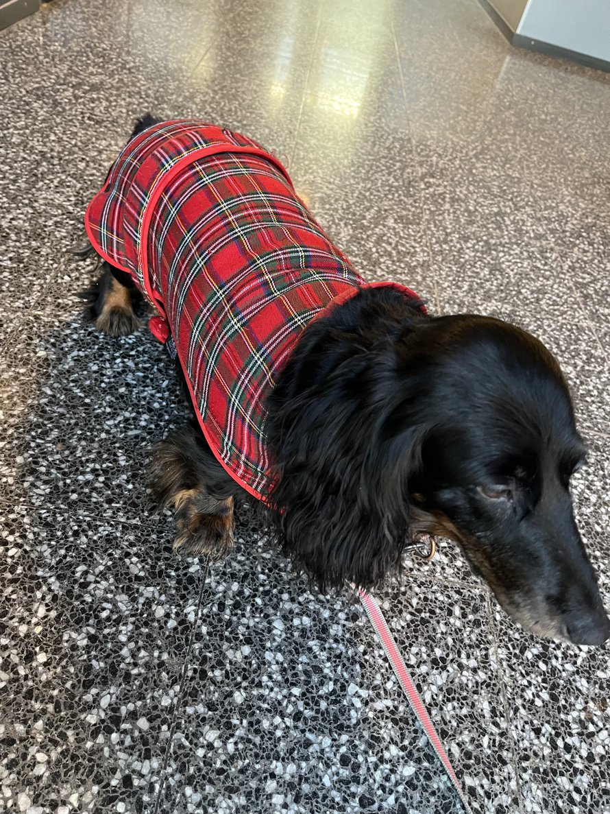 Kylmällä pakkasella Herttaa lämmittää skottiruutuinen takki, joka on ostettu Skotlannista Loc Nessin matkamuistomyymälästä.