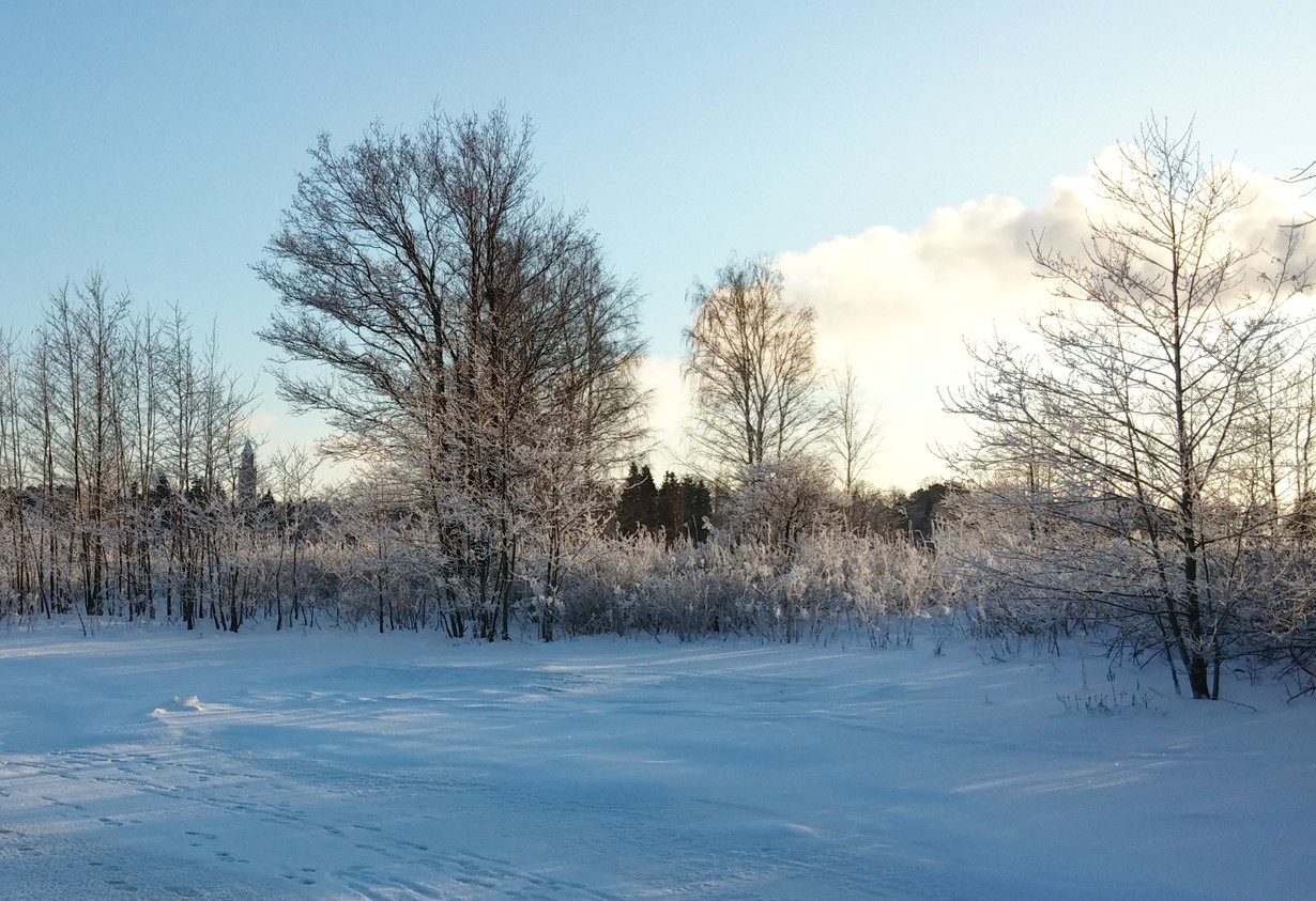 Kuva on otettu tammikuussa 2016 Helsingissä. Kävin Hietaniemen hautausmaalla viemässä kynttilän vuosi aiemmin kuolleen äitini haudalle. Oli kaunis pakkaspäivä ja lenkkeilin samalla meren jäällä, aurinkoinen sää oli otollinen myös kuvaamiselle. Lähellä rantaa on pieni saari joka edestä otin tämän kuvan, Hietaniemen kappelin torni näkyy taustalla. Kuva on otettu tammikuun loppupuolella joten se sopisi parhaiten tammi- helmikuun kuvaksi.