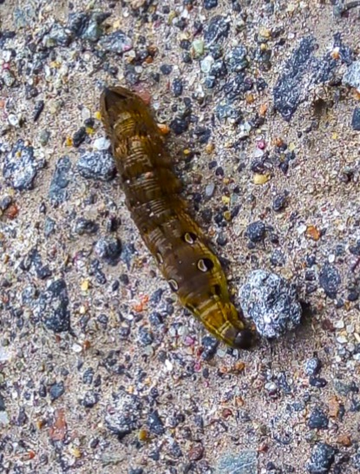 Etusormeni pituinen ja paksuinen otus pilkisti lehtien seasta. Huh, luulin käärmeenpoikaseksi! kunnes hivuttautui kokonaan hiekalle. Hyönteisoppaasta löytyi nimi.