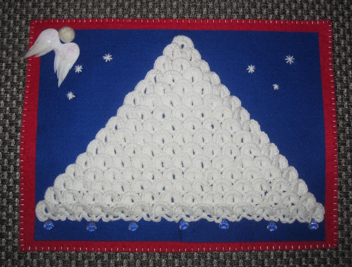 Lehdessänne 9/12 krokotiilikuvioisen huivin ohjeella toteutettu jouluinen käsityö seinälle tai pöydälle. No, rehellisesti sanoen, huivi siitä alunperin piti tulla.