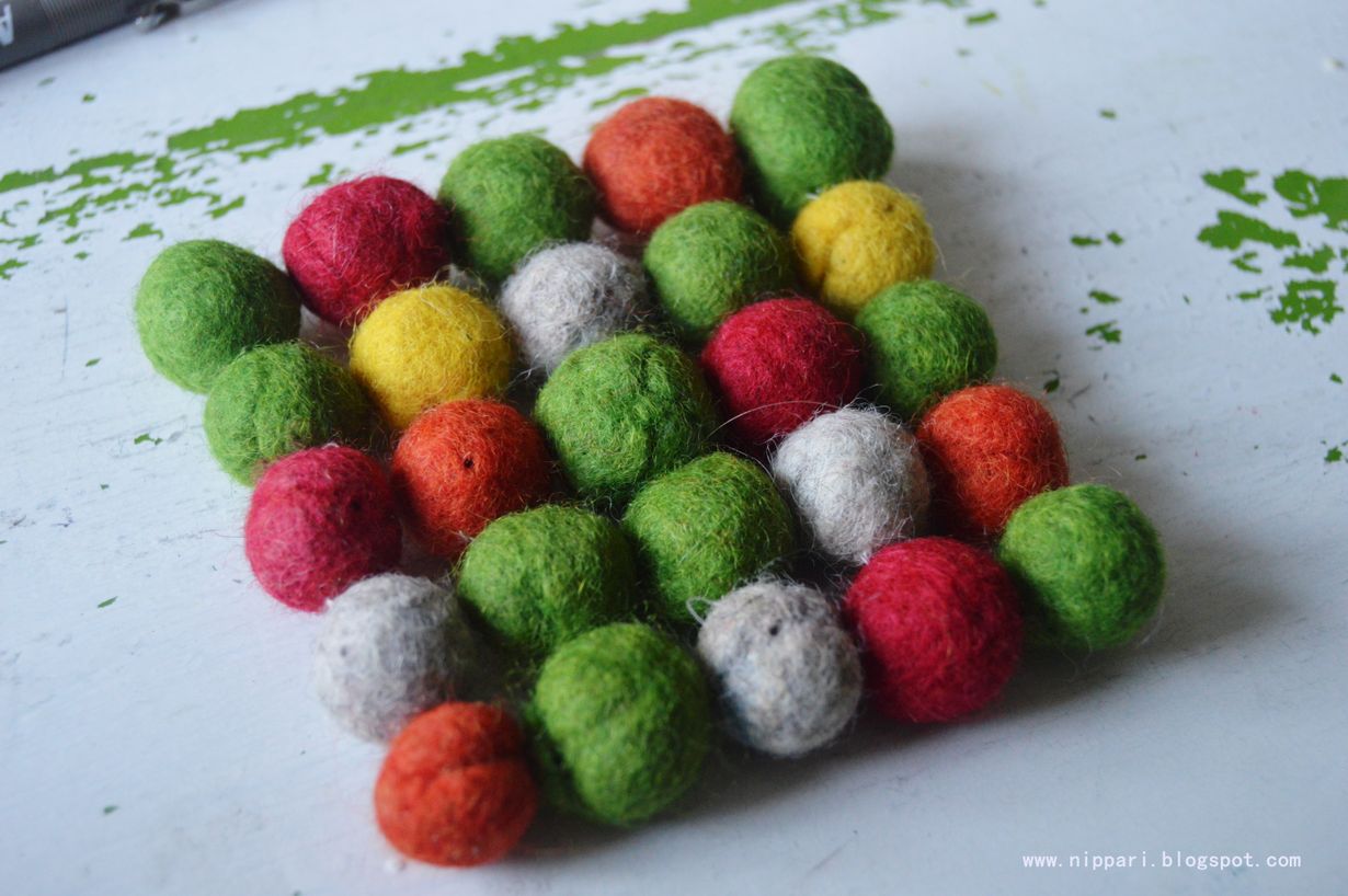 Suuri Käsityö - itse tehty lahja Huopapannualunen 3.12.2012 klo 19:13 Tein isoäidilleni joululahjaksi pannualusen, joka koostuu värikkäistä huovutetuista palloista, jotka olen ommellut yhteen.