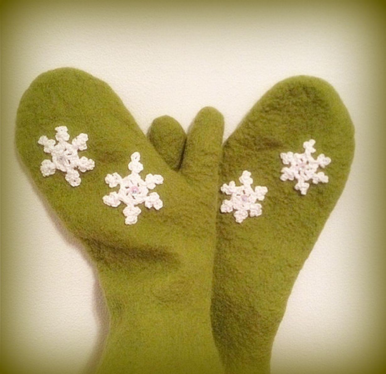 Suuri Käsityö - itse tehtyjä lapasia Huovutetut lapaset 11.1.2014 klo 17:03 Vihreät lapaset. Huovutin märkähuovutuksena niitä. Ja vielä muutama virkattu lumihiutale. Kettuira
