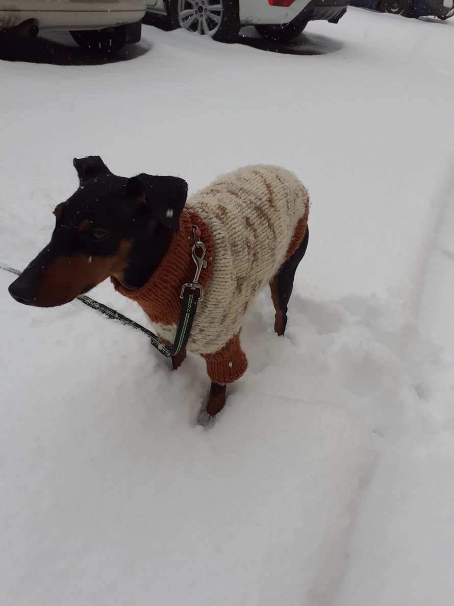 Olen kutonut Iirikselle (Manchesterinterrieri) Novita Hygge wool (100 % villa) langasta oheisen villapaidan.