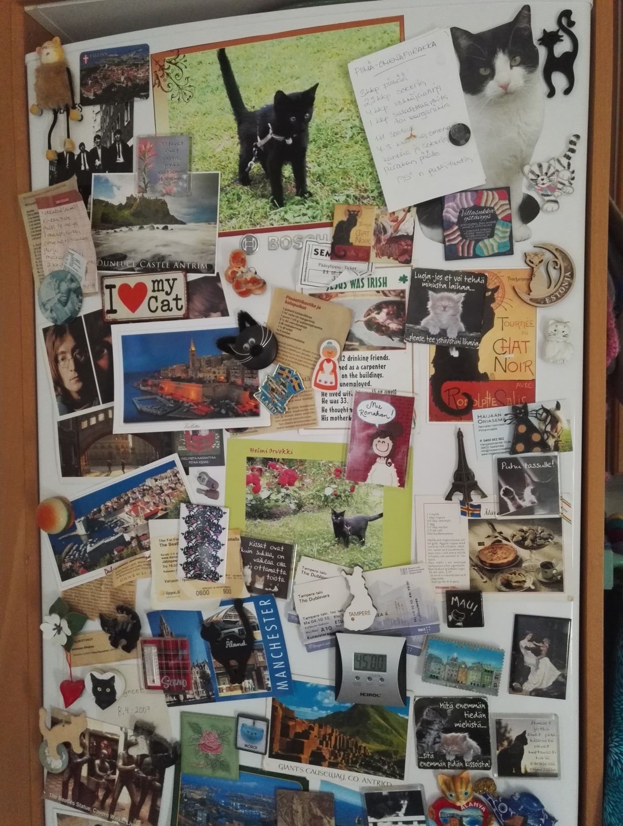 Ja tässä on vasta jääkaapin ovi. Joo, tiedän että pitäisi siivota tämä mutta mistään näistä en kuitenkaan halua luopua, niin että...