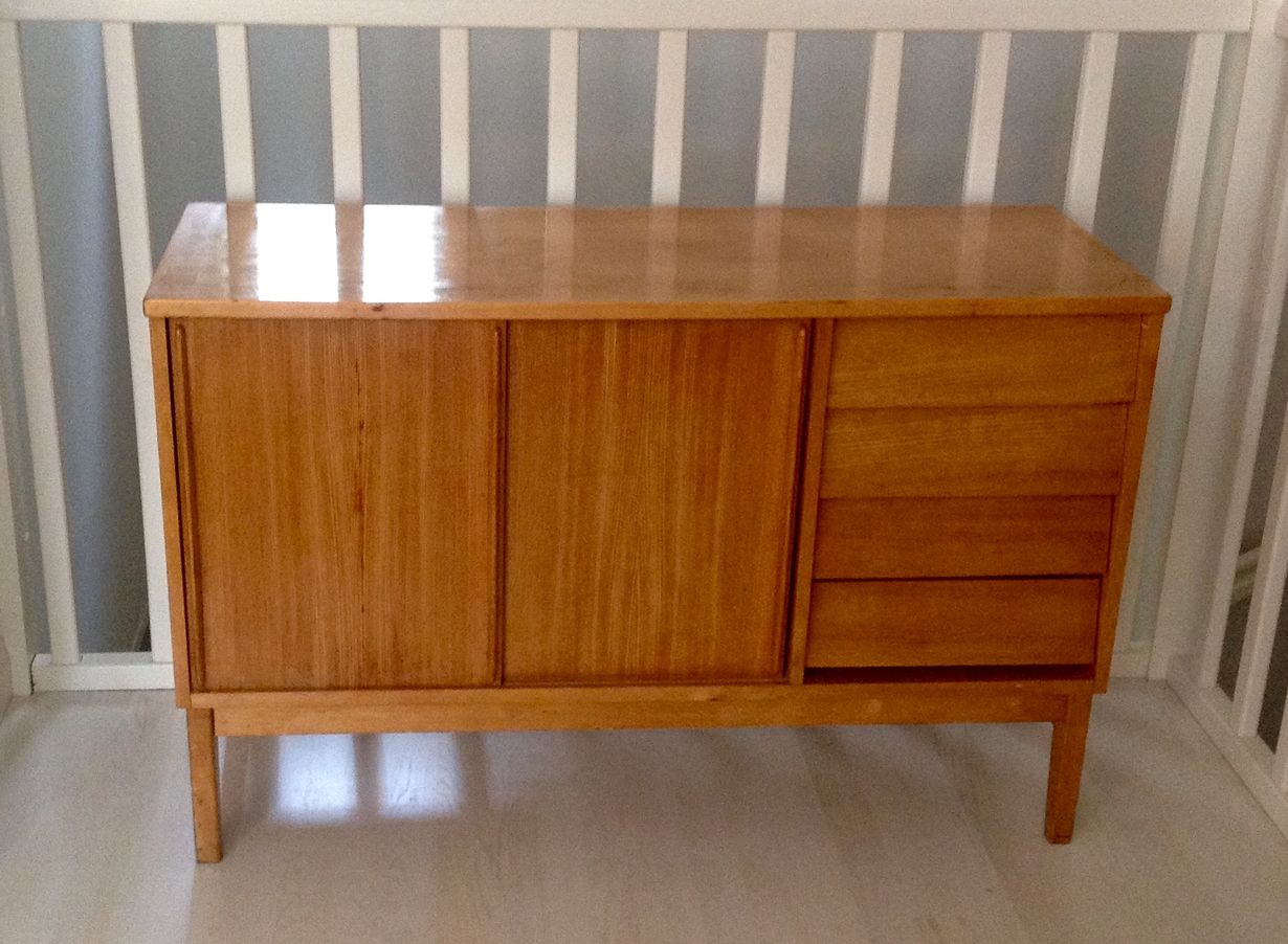 Lohjan kierrätyskeskuksesta löydetty Askon Arava-sarjaan kuuluva pieni senkki. Ymmärtääkseni Ilmari Lappalaisen -56 suunnittelema. Löysin vastaavan kuvan joitakin vuosia sitten jostain sisustuslehdestä. Olisi pitänyt ottaa talteen. Tätä pidän yhtenä parhaimmista kirppis- yms. löydöistäni. Jälleenrakennuskauden lapsi, kuten minäkin.