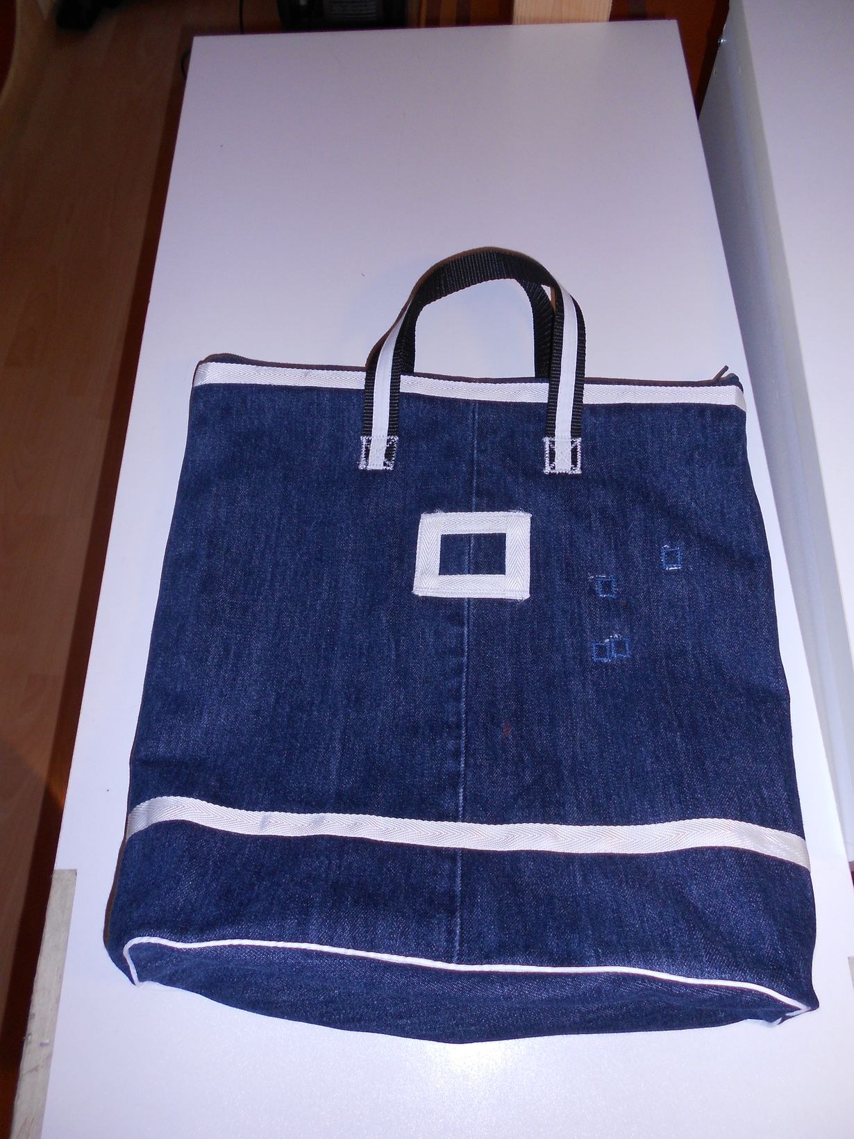 Suuri Käsityö - itse tehty lahja Jenkkikassi 16.12.2012 klo 22:44 Isälleni tein vanhoista farkuista,vanhan ajan jenkkikassin mallilla kauppakassin lahjaksi.