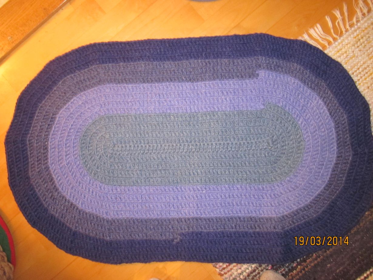 Suuri Käsityö - Itse virkattuja kodintekstiilejä joogamatto 19.3.2014 klo 21:44 virkkasin soikean maton paksusta karvalangasta lilan harmaan sinisen sävyissä. Se on mukavan lämmin ja pehmeä katia