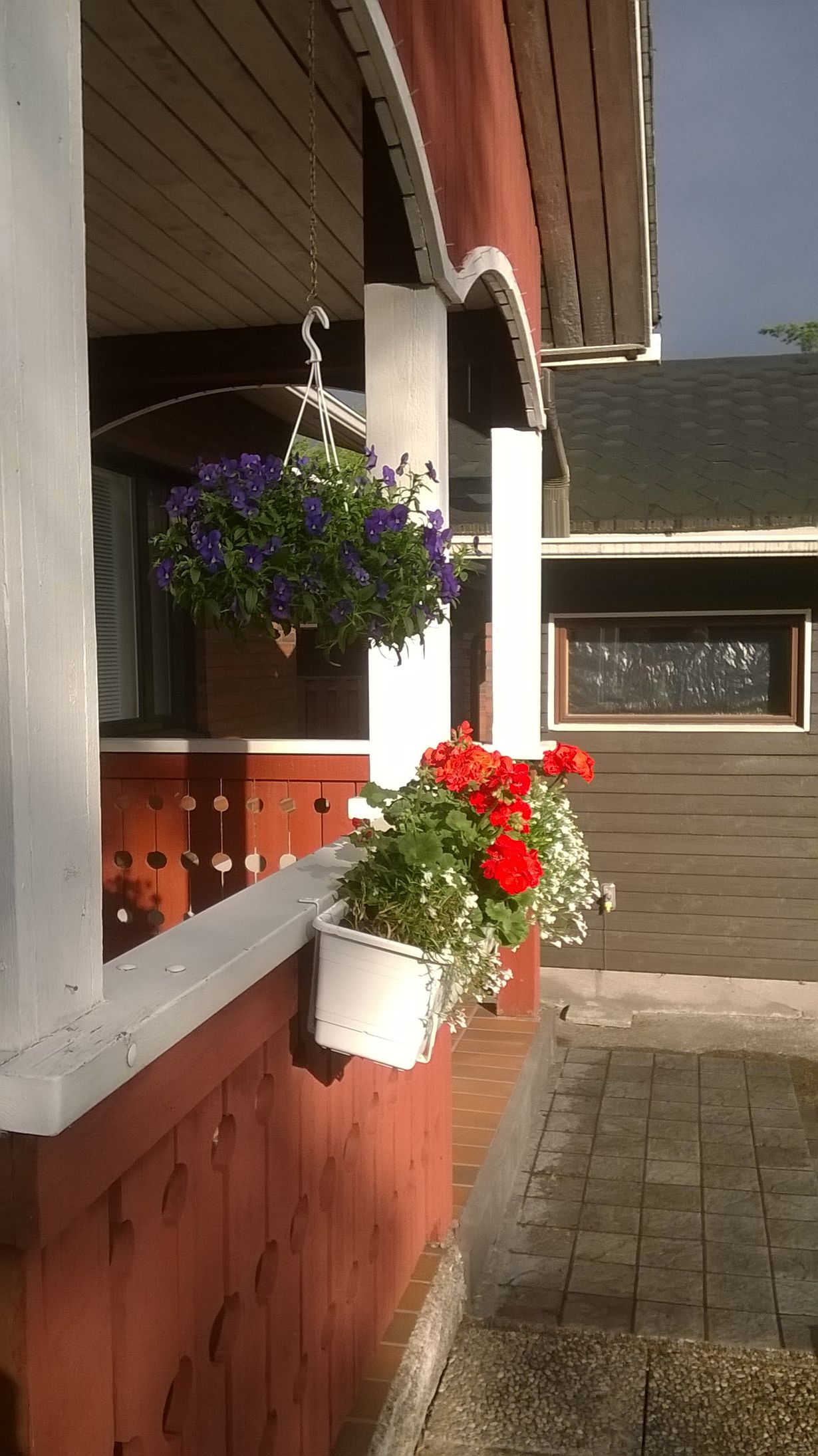 Kotikuistin äärellä olen mökiltä tultua kastelemassa kukkia.