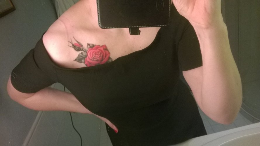 Päätin antaa itselleni 50-vuotislahjaksi klassisen tatuoinnin, asuin tuolloin Kalliossa. Löysin tatuoitsijan, jolla oli taideopintoja taustalla ja sen huomaa käden jäljestä!