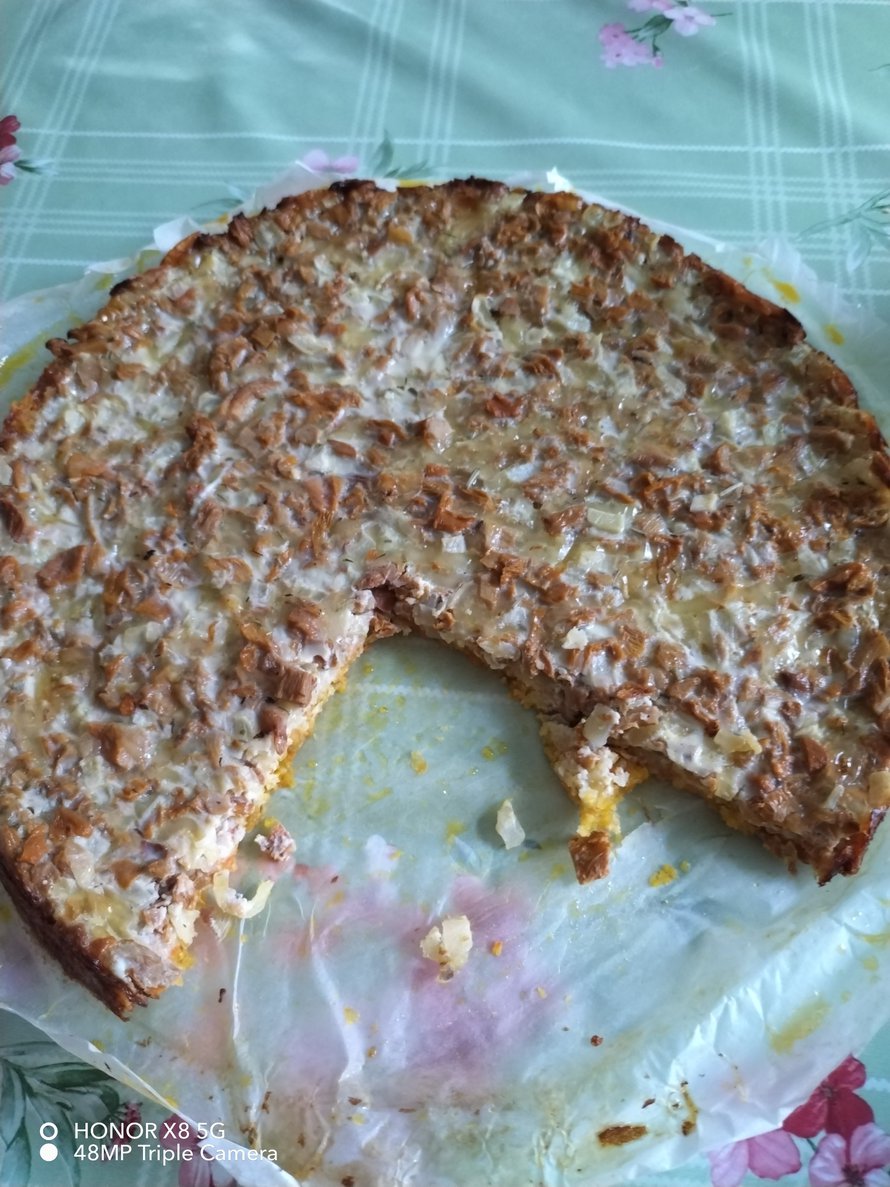 Sekoita keskenään, paista piirakkapohja 250 asteessa 10min uunin alatasolla