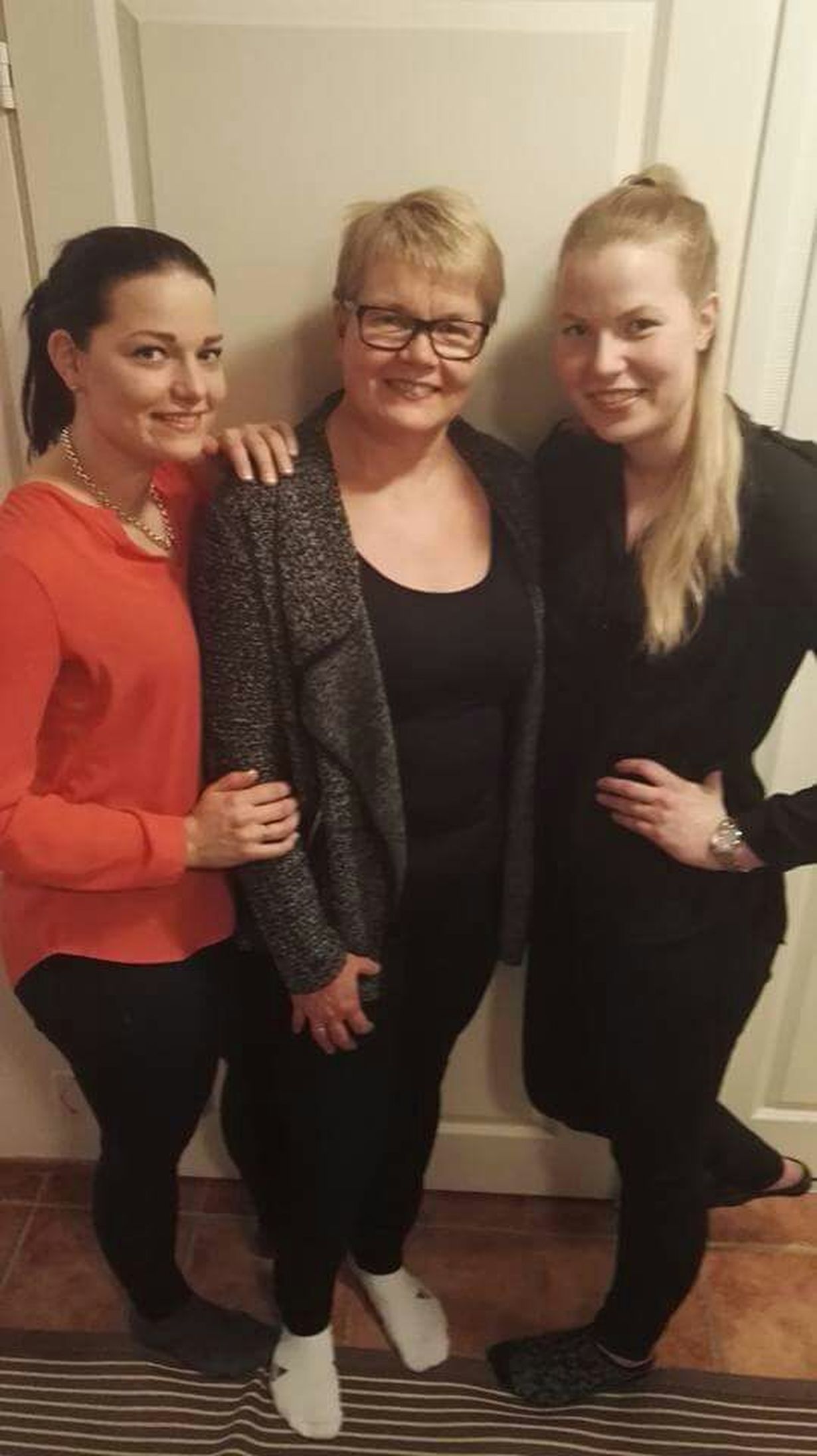 Kuvassa vasemmalla Sara, keskellä äitimme Salme ja oikealla Salla.