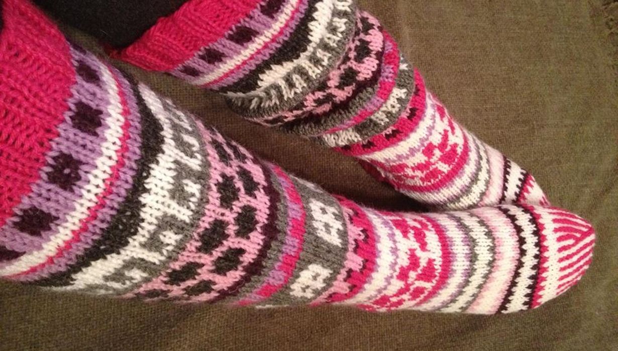 Suuri Käsityö - itse tehtyjä villasukkia Kirjoneule kiehtoo 30.12.2013 klo 10:29 Muusikkoystäväni tilasi vaimolleen joululahjaksi sukat. Löysin käsityölehdestä kiinnostavan mallin ja tein siitä oman versioni.