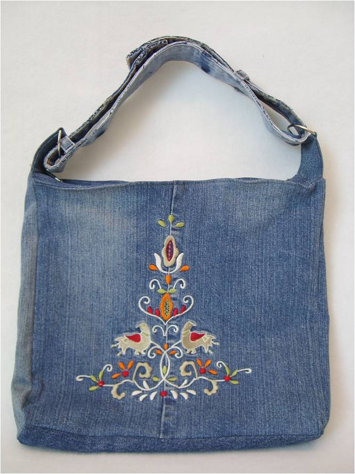 Suuri Käsityö - itse tehty kassi Kirjottu farkkulaukku 28.3.2013 klo 17:01 Laukku on tehty vanhoista tyttöjen farkuista, kirjottu kuvio on ollut lahkeen sivusaumassa. Ritu