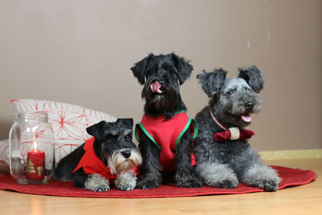 Tehtiin tytön kanssa koiruuksille joulukoristeet joulukuvaa varten. Kahdelle tuli rusetti ja pienimmälle nuttu huovasta. Ei kaikki menny suunitelmien mukaan, vaan kuvaukset kestivät koiruuksien mielestä varmaan liian kauvan ja eikö ne repineet sen rikki. Joten tähtikauluri ei ole omatekonen :(