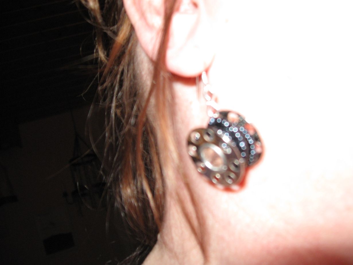 Vanhaan metallinen ompelukoneenpuola kieritin ohueen metallilankaan pieniä helmiä jonka sidoin langan tavoin, puolaan koukku paikalleen ja korut valmiit .