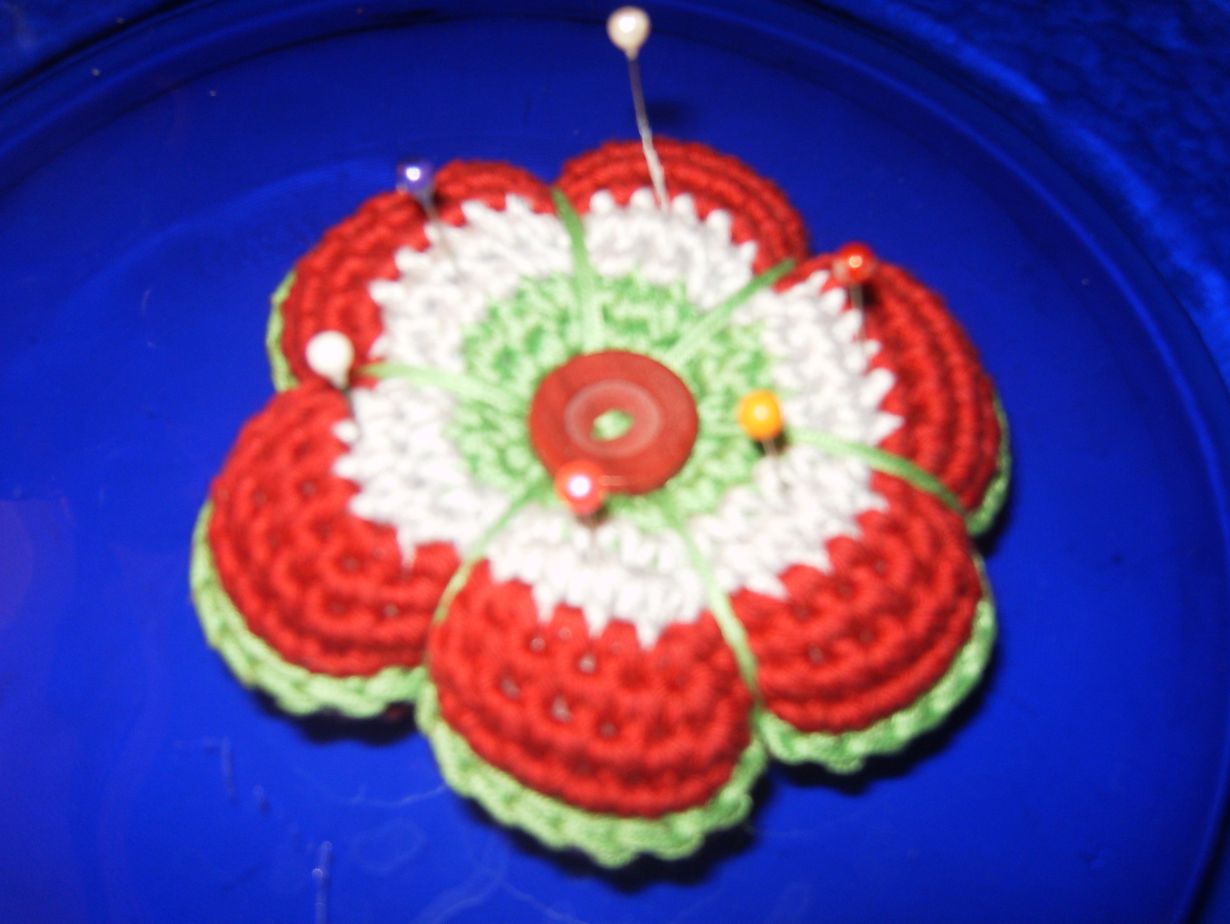 Suuri Käsityö - itse tehty lahja kukanmallinen nuppineulatyyny 22.12.2012 klo 20:33 puuvillalangasta virkattu nuppineulatyyny tämän ja paketillisen nuppineuloja saa ompelua harrastava serkkuni.