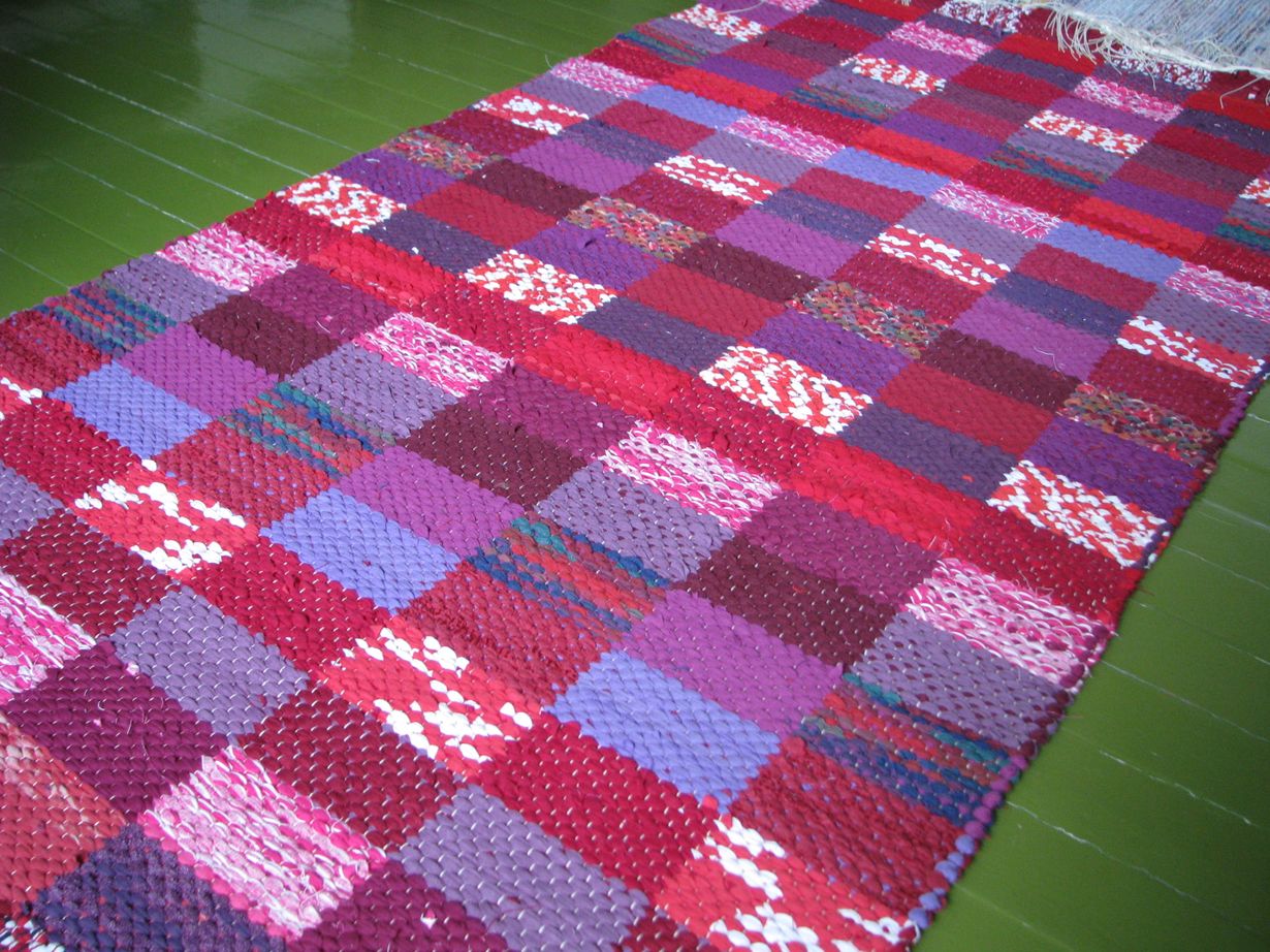 Laitoin 40 metrin mattoloimen kuvikas sidoksella. Tässä harjoitus, en ole ennen tällaista kutonut. Tähän upposi t-paidat golleget ym trikookuteet, kaikki kuteet leikattu vanhoista vaatteista.