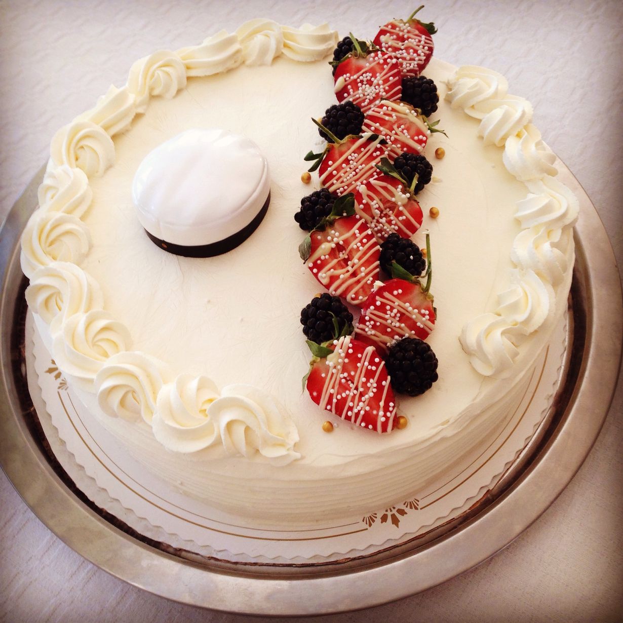 Kakun tein tyttären lakkiaisiin , gluteiiniton pohja , sisällä tuoreet mansikat , lemoncurd ja vaniljarahkakerma. Päällä flora vispiä, valkosuklaamansikoita ja boysenmarjoja.