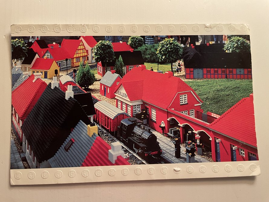Tämä kortti Billundin Legolandista on vuodesta 1999 ja edelleen käytössä kirjanmerkkinä.