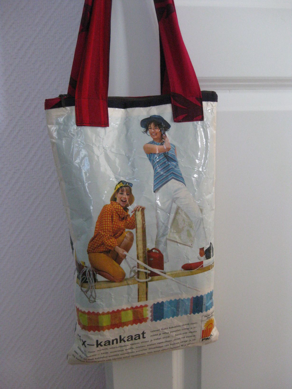 Suuri Käsityö - itse tehty kassi Lehdestä laukuksi 10.3.2013 klo 21:44 Ihastuin vanhoihin aikakauslehtiin ja niiden mainoksiin, ja halusin tuoda niitä esille persoonallisella tavalla. MarikaT