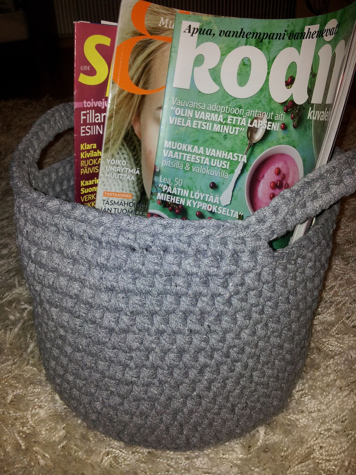 Suuri Käsityö - itse tehty lahja Lehtikori 12.11.2012 klo 19:20 Virkkasin ontelokuteesta siskolleni lahjaksi lehtikorin. Koriin laitan valmiiksi mukaan lukemiani lehtiä kierrätysperiaatteella. lore